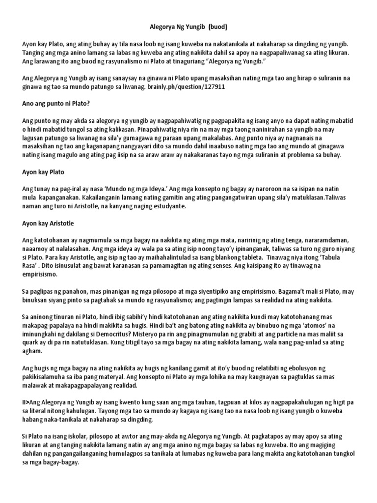Jun 24 2016 Alegorya ng yungib. Sep 23 2012 Alegorya Ng Kuweba. Ang Alegorya ng Yungib ni Plato Isinalin sa Filipino ni Willita A.